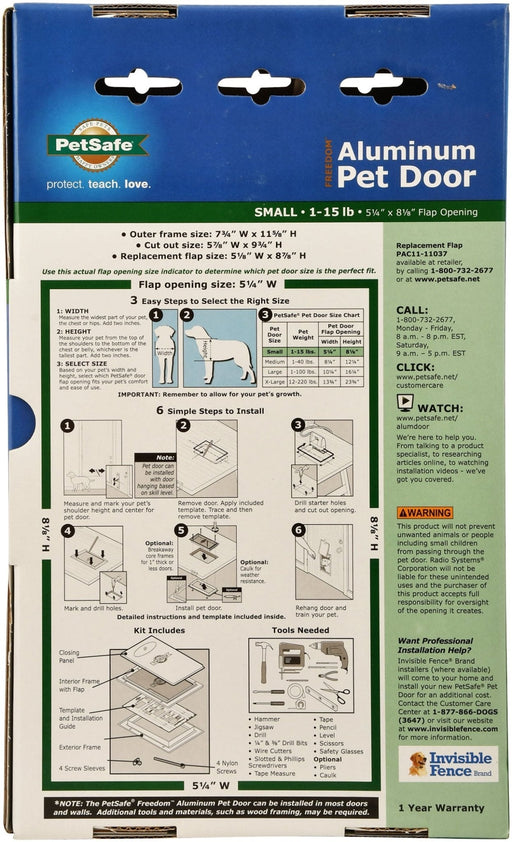 Freedom Pet Door Great for severe weather areas. Closing panel fits on inside of door and has locking pin. Heavy duty aluminum frame. Telescoping a...