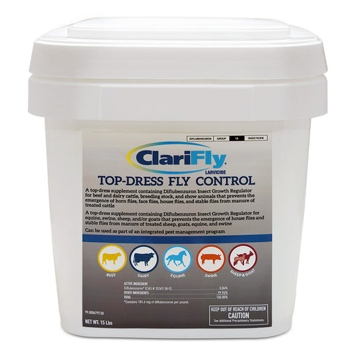 View full detailsClariFly Larvicide Top-Dress Fly Control, 15 lbs ClariFly Larvicide Top-Dress Fly Control is a highly effective, feed-through larvicide that contai...