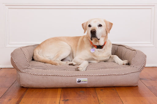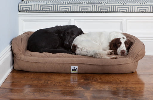 Variety of dog bed styles including gusseted, bolster beds, crate pads, and heated mats. Every pet parent should purchase a good dog bed that is warm and comfortable and meets your canine friend’s needs. Your dog’s bed helps provide a safe place to rest at night and a cozy space to nap during the day. The following tips may help you choose the perfect bed size for your dog. Observe your dog’s sleeping habits and measuring them while asleep, as some dogs curl up and others like to stretch. Measure your adult dog while asleep in their normal position and add to this measurement 4-6 inches for small dogs and 8-12 inches for medium to large dogs. Since nobody likes a small bed, if in doubt order the larger size. Remember your pup will grow so either order a larger bed for his breed size or purchase a larger bed as needed. Our dog bed style selection includes gusseted, bolster beds in round, oval, and rectangular shapes. We also have crate pet mats and heated mats made either out of durable plastic or softer materials available. Choose the best dog bed to meet your dog’s needs here
