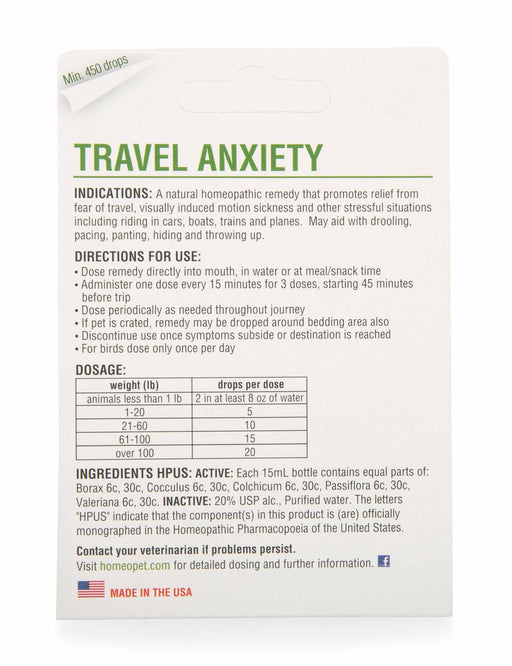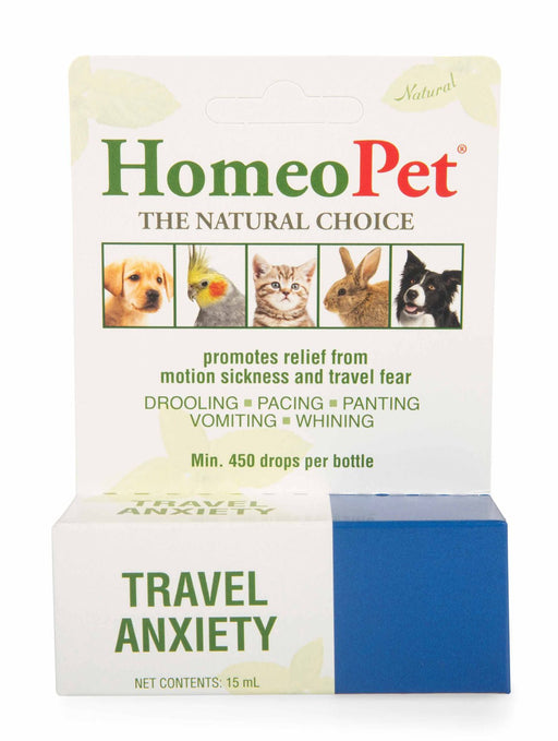 View full detailsHomeoPet Travel Anxiety - 15 mL Bottle HomeoPet Travel Anxiety helps ease stress and anxiety many pets experience while traveling by car, plane, tr...
