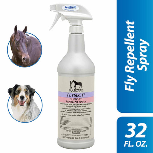 Equicare Flysect Super-7 Fly Spray for Horses, 32 oz Repellent fly spray contains 0.20% Pyrethrins & 0.20% Permethrin to control face, stable ...