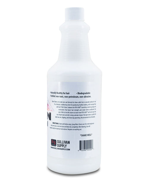 View full detailsSullivan's Kleen Sheen for Cattle The very best daily care formula with ultra shine. Features: builds hair strength contains a built in hair ...