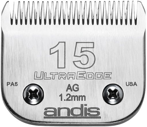 Andis® Size 15 Blade Fits ALL Andis®, AG, AGC, AGR, MBG and Oster® A5® Models. Finish cut, 3/64" - 1.2 mm.