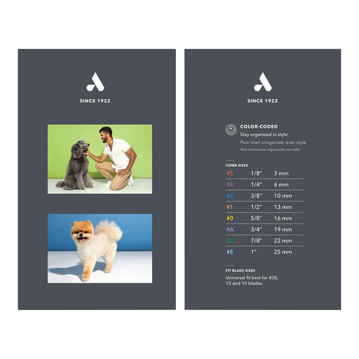 View full detailsAndis 7-Piece Animal Clip Comb Set Add versatility to your clippers with Andis' 7-piece Clip Comb set. Designed for ease and convenience, each comb...