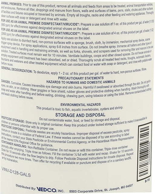 D-128 Disinfectant Disinfects, cleans and deodorizes in one labor-saving step. Effective against Parvo, Hepatitis, HIV-1, Distemper, Feline Leukem...