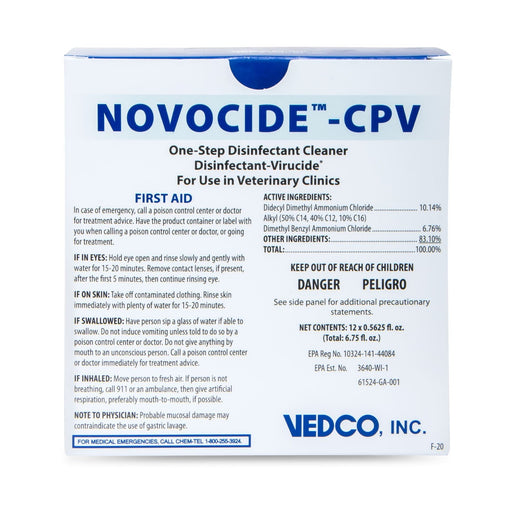 View full detailsNovocide CPV, 12 PackComes with free 32 oz bottle!This one-step concentrated cleaning and disinfecting formula is available in convenient, hand-tea...