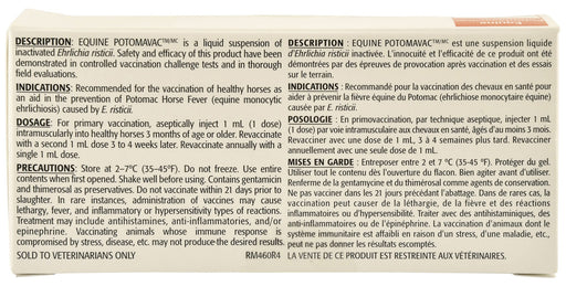 Potomavac, Box of 5 Potomavac is used for the vaccination of healthy horses, 3 months of age or older, against Potomac Horse Fever caused by *Ehrli...