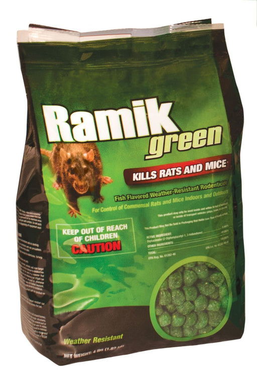 Ramik Green 4 oz Bait Packs Ramik Green 4 oz Bait Packs are mold and moisture resistant and kills rats and mice within 4-5 days after a lethal dose...