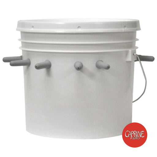 Caprine Feeding Outfit Feed 10 kids at once.White poly 3½ gal pail with 10 special lamb nipples attached to tubing that reaches down into the bu...