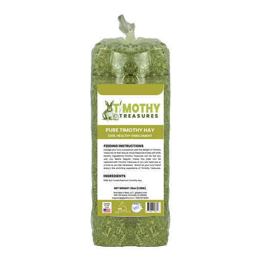 View full detailsTimothy Treasures Hay, Pure Timothy, 20 oz Grandpa’s Best Timothy Treasures are carefully handcrafted from the highest quality Timothy hay avail...