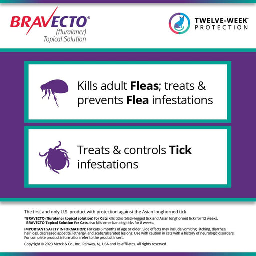 View full detailsRx BRAVECTO Topical Feline BRAVECTO (fluralaner topical solution) for Cats is the first and only U.S. flea and tick product that provides protec...