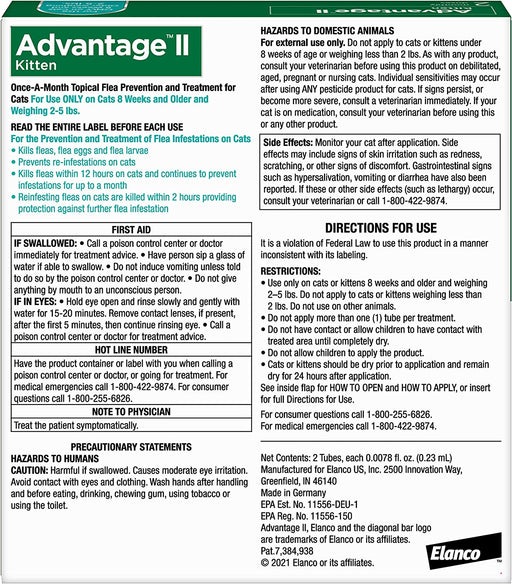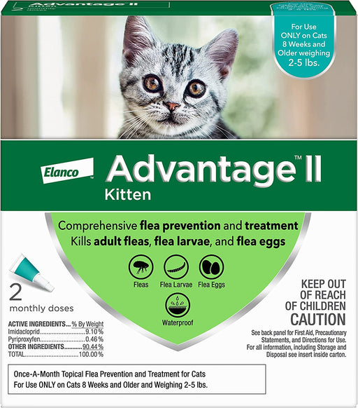 Advantage II Topical Flea Control for Cats & Kittens Advantage II for cats controls existing flea infestations on your cat and prevents further...