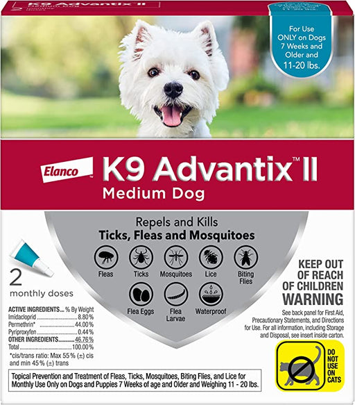 Elanco Advantage II for Dogs Advantage II for dogs controls existing flea infestations on your dog and prevents further infestations from occurring...