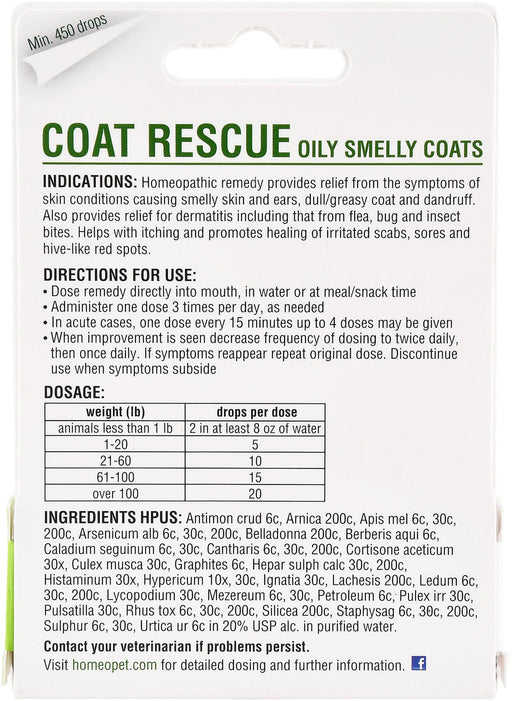 HomeoPet Coat Rescue, 15 mL HomeoPet Coat Rescue is specifically for oily, smelly coats. It also provides relief for dermatitis including that from...