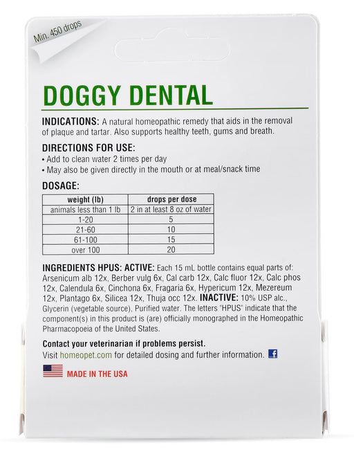 HomeoPet Doggy Dental A natural, homeopathic remedy for dogs that aids in the removal of plaque and tartar. Supports healthy teeth, gums, and breat...
