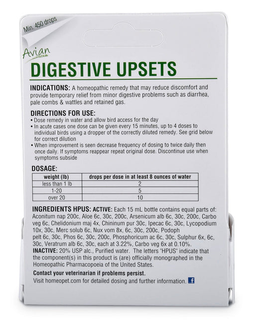 HomeoVet Avian Digestive Upsets Safe, Gentle, All Natural medicines for your feathered friend. All natural Avian Digestive Upsets may reduce discom...