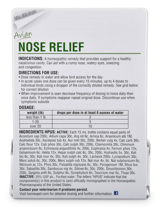 HomeoVet Avian Nose Relief Safe, Gentle, All Natural medicines for your feathered friend. All natural Avian Nose Relief provides relief from runny,...