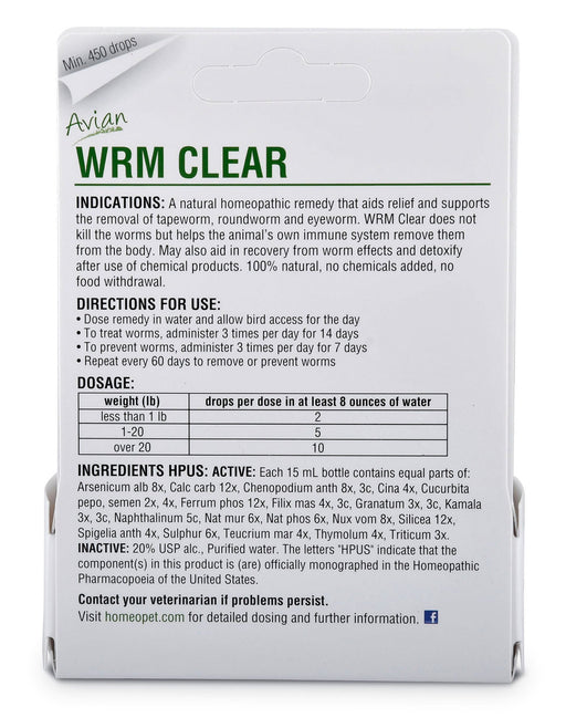 HomeoVet Avian Wrm Clear Safe, Gentle, All-Natural Medicine for Your Feathered Friend HomeoVet Avian Wrm Clear supports the removal of tapeworm, ro...