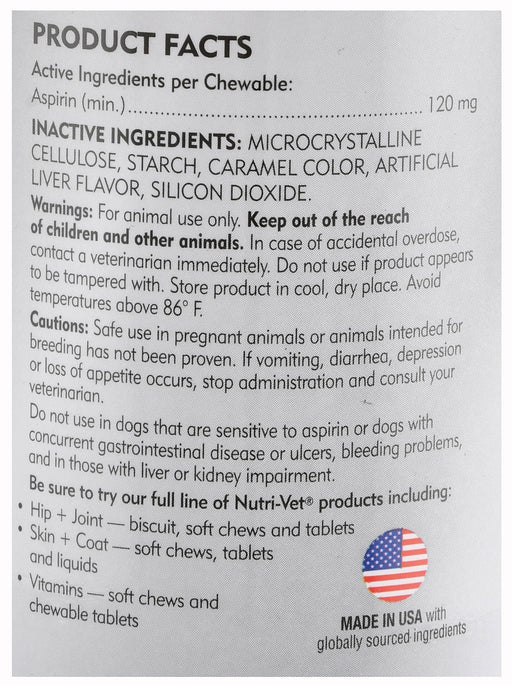 Nutri-Vet Aspirin for Dogs Nutri-Vet Aspirin for Dogs offers safe, effective temporary relief from pain and inflammation associated with arthritis,...