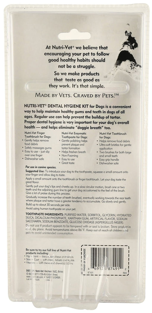 View full detailsNutri-Vet Dental Hygiene Kit for Dogs Oral Hygiene Kit for Dogs is a convenient way to help maintain healthy gums and teeth in dogs of all ages. Pr...