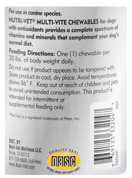 View full detailsNutri-Vet Multi-Vite Chewables for Dogs Nutri-Vet Multi-Vite Chewables for Dogs provide a complete spectrum of vitamins, minerals, amino acids and ...