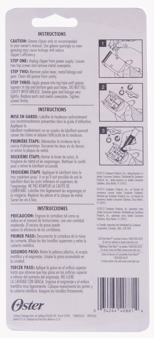 Oster Blade Lube, 4 oz Oster Blade Lube is specially formulated to keep clipper blades and bearings properly lubricated for maximum efficiency. Thi...