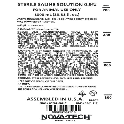 Rx Sodium Chloride 0.9% x 1000ml bag Sterile nonpyrogenic Isotonic solution Single dose plastic container Used as a sterile irrigating solution B...