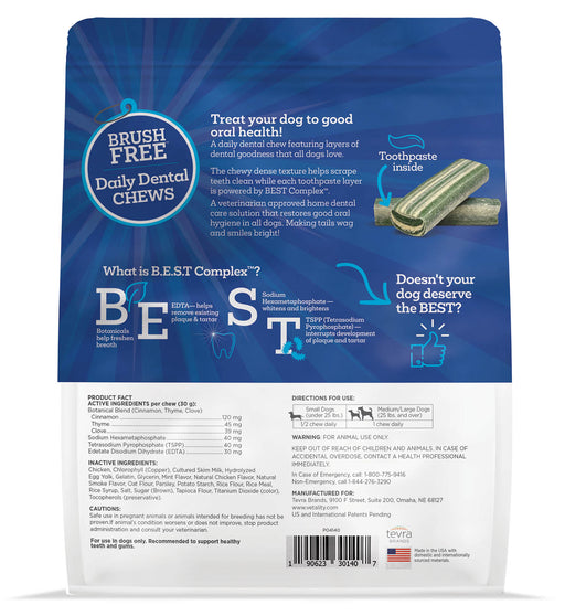 View full detailsBrush Free Daily Dental Chews for Dogs Brush Free Daily Dental Chews make at-home oral care easy, effective, and enjoyable for your dog. Formulated...