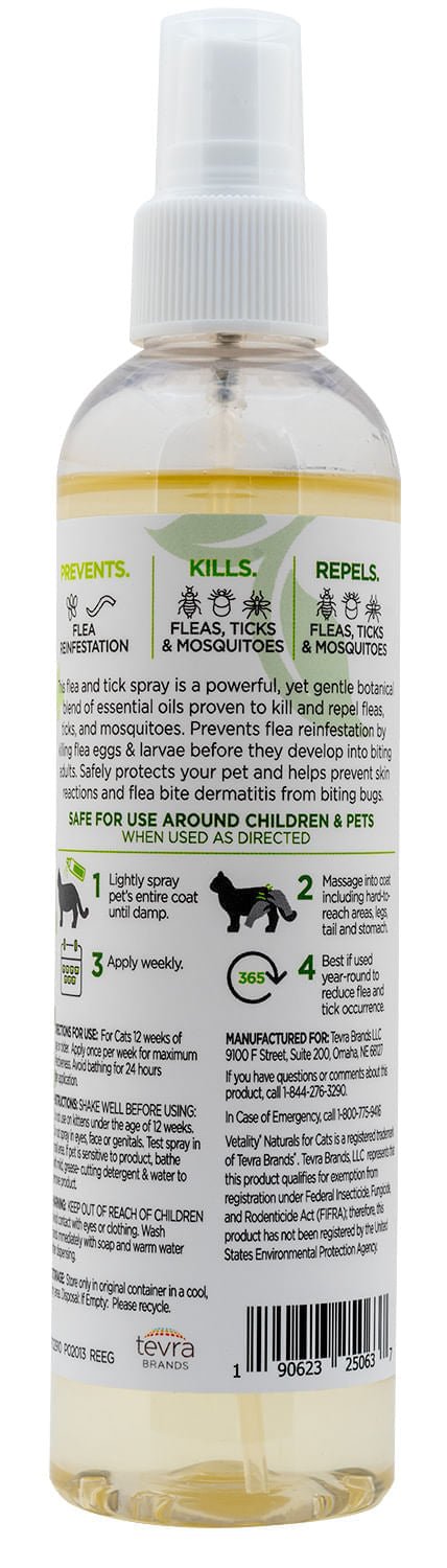 View full detailsVetality Naturals Flea & Tick Spray for Cats, 8 ozThe botanical blend of essential oils provides effective protection against fleas, ticks and ...