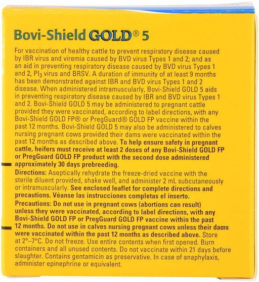 Bovi-Shield Gold 5 BR, BVD Types 1 & 2, PI3, BRSV For vaccination of healthy cattle as an aid in preventing infectious bovine rhinotracheitis c...