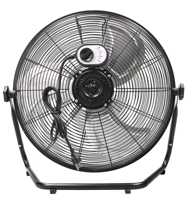The 20" High Velocity Floor Fan by Maxx Air offers 3 airflow speeds from a PSC motor and 3 fan blades. This small and versatile fan is perfect for indoor areas where space may be limited. Each blade is individually balanced for minimum vibration and the 4 non-skid feet offer operational stability for quieter operation. The tilting fan head lets you control the direction of the airflow. This heavy-duty fan is also has a built-in handle and the 5-foot power cord has a built-in retainer making it easy to store or move from place to place to suit your needs.