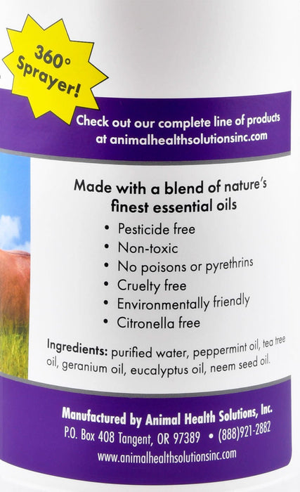 Ingredients: purified water, peppermint oil, tea tree oil, geranium oil, eucalyptus oil, and neem seed oil.