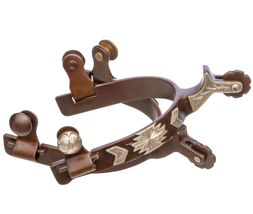 Add a classic touch to your riding gear with these elegant rosebud spurs. Crafted from durable steel with an antique brown finish and detailed German silver accents, they offer a humane and stylish option for effective communication.
