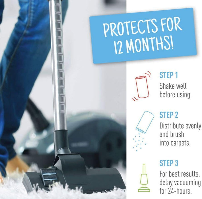 Kills fleas and ticks on carpet while controlling re-infestation for up to 365 days.