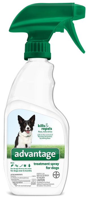 Advantage Treatment Spray for Dogs from Elanco kills flea eggs, flea larvae, and adult fleas, as well as lice and multiple species of ticks on contact! Advantage also aids in the control of flea bite dermatitis by killing fleas.