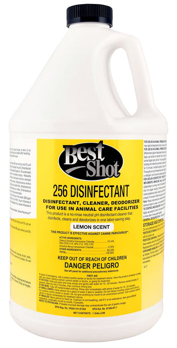 One-step broad-spectrum disinfectant cleaner from Best Shot Pet. Same active ingredients as Ken'L-Lan 128 at twice the strength. 1 gallon makes up to 256 gallons. No-rinse formula cleans, disinfects, and deodorizes. Kills viruses, bacteria, fungi, mold, and mildew, including parvo, H1N1, Covid-19*, and MRSA. Perfect for cleaning kennels, crates, and cages.