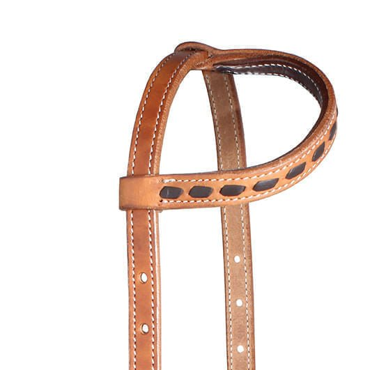 Built to look good and work hard, this one ear headstall is made from durable harness leather with a dark buck stitched border. Made with stainless steel hardware and has lace tie bit ends.