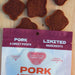 Real meat (chicken, beef, elk, or salmon), dehydrated sweet potato, sugar, dried brewer’s yeast, vegetable glycerin, salt, propionibacterium freundenreichii fermentation product, mixed tocopherols (natural preservative), and liquid smoke (in select varieties).