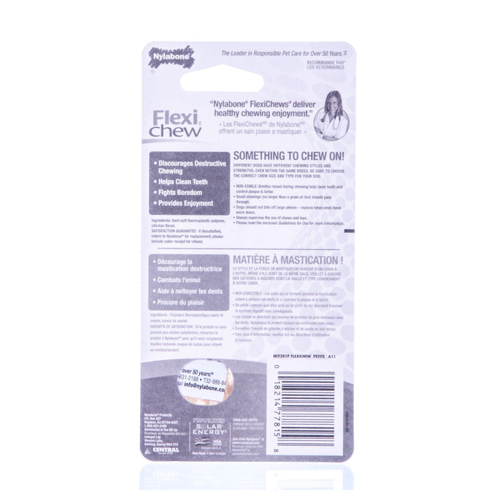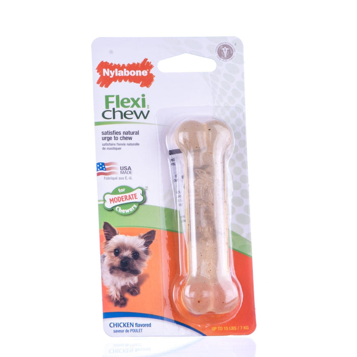 The Nylabone® Flexi Chews are designed for moderate chewers and puppies, offering a soft and flexible texture that’s still highly durable. These chews help promote healthy chewing habits while keeping your dog entertained. Infused with a delicious chicken flavor, they are perfect for satisfying your pet's natural urge to chew. However, they are not recommended for strong or aggressive chewers.