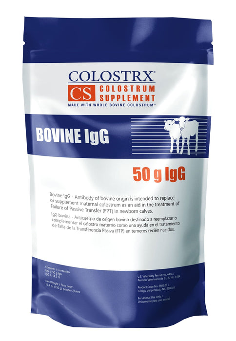 Colostrx is the colostrum supplement brand ranchers have trusted for more than 30 years — made with whole bovine colostrum, Colostrx CS delivers the guaranteed quality and quantity of immunoglobulins that calves need for the best start. Colostrx is a valuable necessity for increasing newborn calf immunity to disease and illness when natural colostrum is limited or of low quality. Licensed by the USDA as a veterinary biologic proving safety, purity, potency, and efficacy.