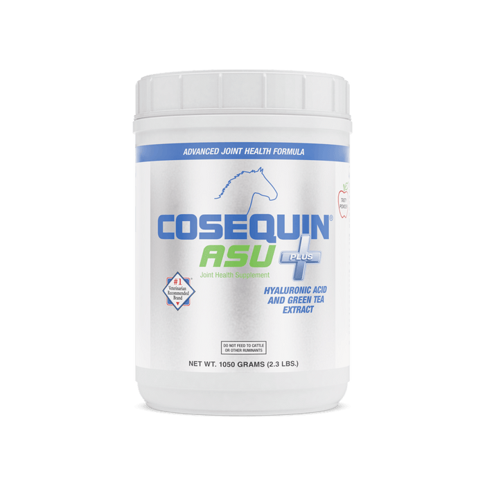 Cosequin is the #1 veterinarian recommended joint health supplement brand*. Cosequin ASU Plus is veterinarian formulated with avocado/soybean unsaponifiables (ASU), glucosamine, chondroitin sulfate, methylsulfonylmethane (MSM), boswellia serrata extract, green tea extract and HA to provide joint health support for equine athletes regardless of discipline or performance level. When performance matters, choose Cosequin. *Survey conducted among equine veterinarians who recommended oral joint health supplements.