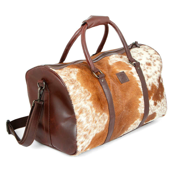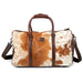 Perfectly sized for overnight or weekend trips, the Cowhide Overnight Duffel Bag is both functional and stylish. At 18" long, this bag offers ample space while maintaining a compact, travel-friendly design. The body of the duffel is crafted from hair on hide, giving each piece a unique and western flair. With leather sides, leather handles, and a full-length zipper, this duffel is as durable as it is fashionable.