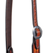 The Diamond Split Ear Headstall features stand-out diamond tooling set against a backdrop of honey with a deep chocolate border. Stainless steel hardware.