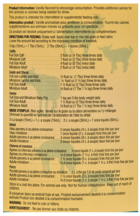 • Weaned calves: 1.0 - 2.0 oz (2 - 4 tbsp) 3 times daily