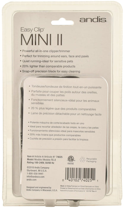 Compact and powerful all-in-one trimmer, perfect for trimming around ears, face, and paws. Lightweight, comfortable, and only weighs 3 oz! The quiet running trimmer to help keep your animal calm during grooming. Trimmer has a snap-on precision blade for easy cleaning. 4 attachments combs 1/8", 1/4", 3/8", and 1/2".