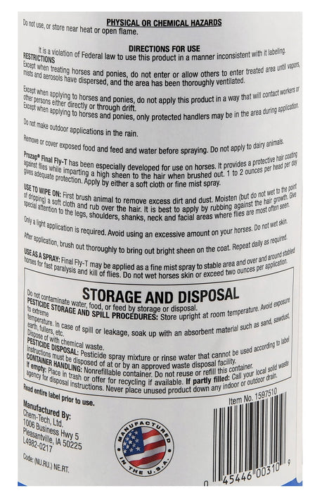 View Final Fly-T Horse Spray and Wipe-On manufacturer and label information