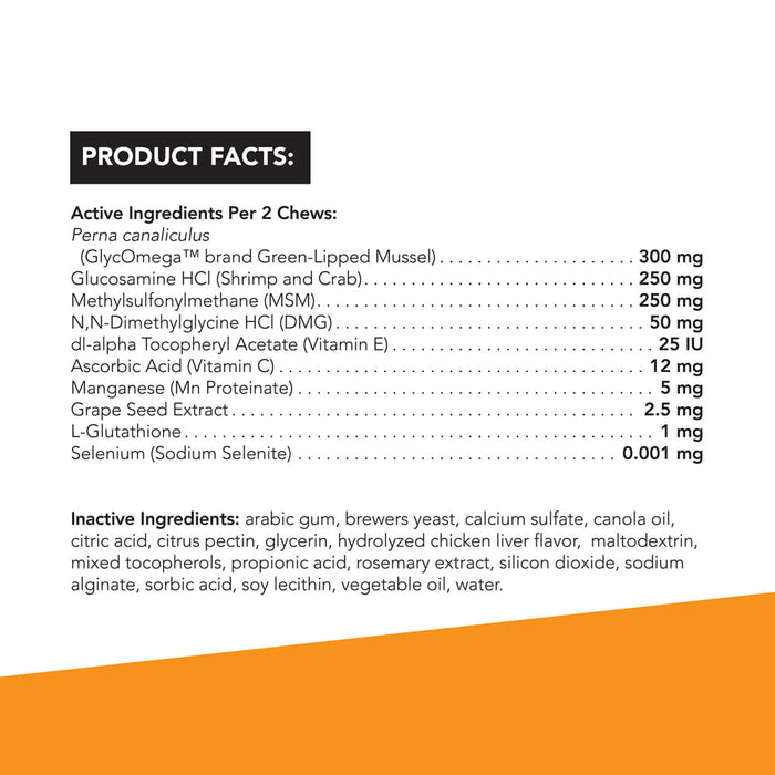 Glyco Flex 3 Hip and Joint Supplement for Small Dogs is clinically proven and specially formulated to meet the needs of small dogs. This supplement represents stage 3 of a comprehensive joint support program designed to maintain joint comfort and mobility throughout your dog's life. Recommended by veterinarians for over 30 years, it comes in tasty bite-sized chews that offer higher levels of Glucosamine, MSM, and Perna canaliculus for superior joint care.