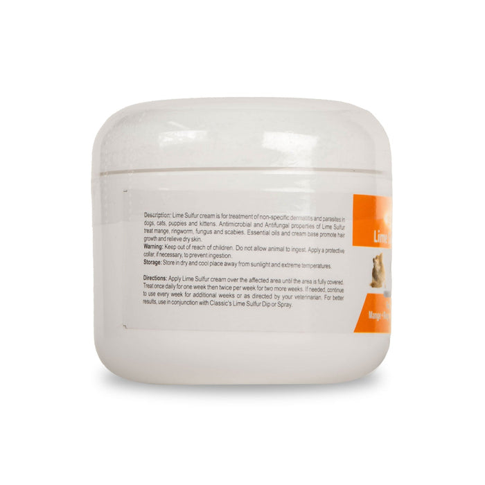 Directions: Apply Lime Sulfur cream over the affected area until the area is fully covered. Treat once daily for one week then twice per week for two more weeks. If needed, continue to use every week for additional weeks or as directed by your veterinarian. For better results, use in conjunction with Classic's Lime Sulfur Dip or Spray.