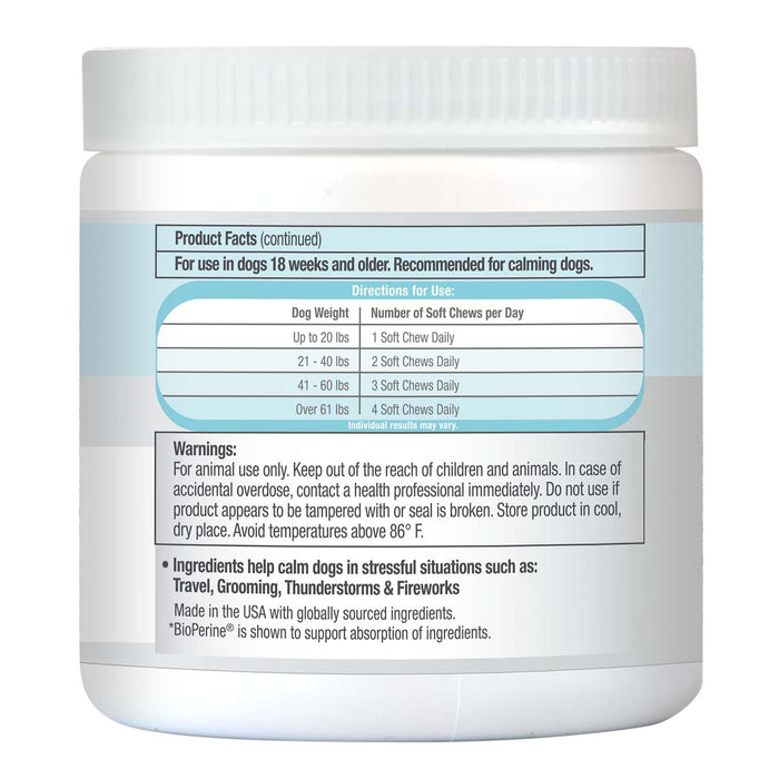 Calming soft chews for dogs are created to soothe and pacify pets in tense situations such as fireworks, thunderstorms, long-distance travel, or grooming sessions. These liver flavored chews feature a 7x SuperBlend with ingredients including: