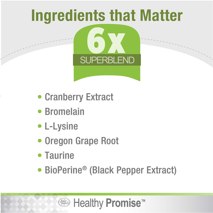 Healthy Promise Cat Urinary Tract Soft Chews are designed to support your feline's urinary health with a delicious chicken and cheese flavor they’ll love. Each soft chew features a potent 6x SuperBlend that includes Cranberry Extract, known for its benefits in maintaining urinary tract health, along with Lysine and Taurine for essential amino acid support.